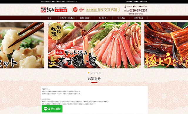 水揚げされたばかりのタラバガニやズワイガニを、徹底した品質管理のもとで提供しています。